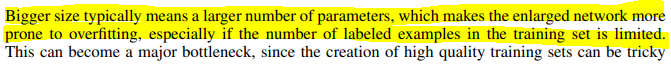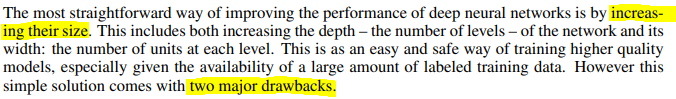 신경망의 퍼포먼스를 향상시키는 방법은 사이즈(너비와 깊이)를 늘리는 것이다. 많은 양의 라벨링된 학습 데이터에서는 좋지만, 이 단순한 솔루션은 두 가지 문제점을 안고있다.