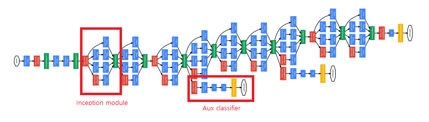 Aux classifier는 보조 분류기로써 중간의 결과를 점검할 수 있다.