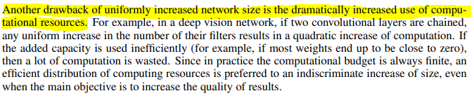 두 번째 문제점은 신경망의 사이즈가 균일하게 증가하면 계산 리소스가 기하급수적으로 증가하는 것이다.