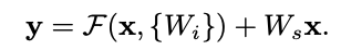 $y = F(x, W_{i}) + W_{s}x$