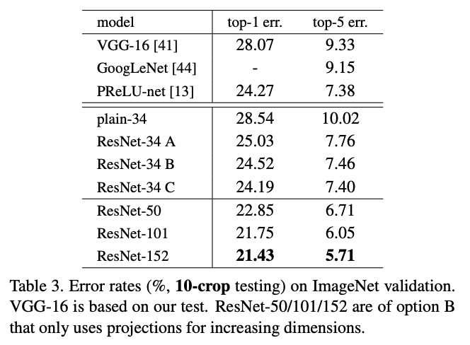 residual network 같은 경우에는 3가지 옵션으로 에러율이 측정되었다.