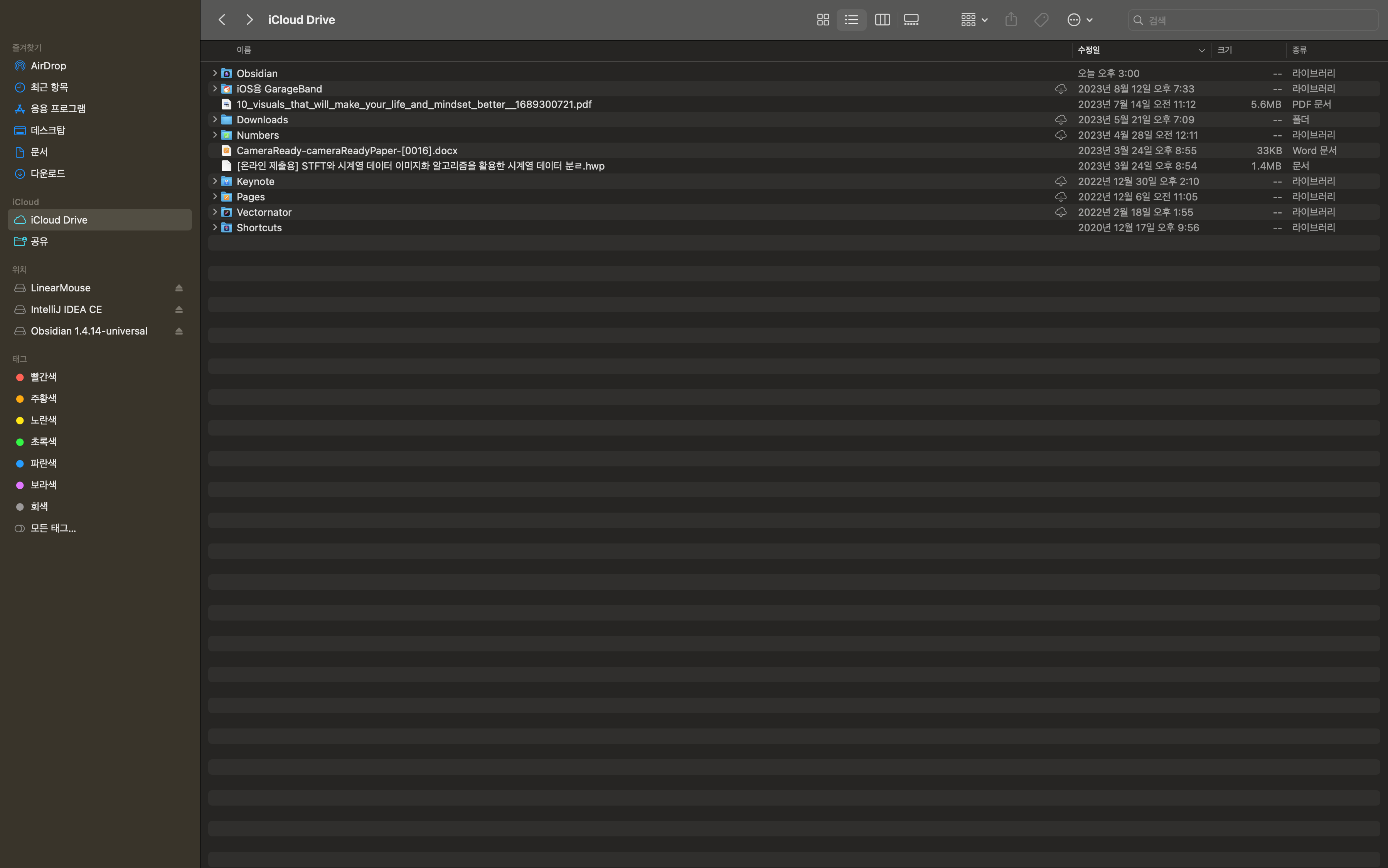 - 이후 맥 PC로 돌아와 [Finder] - [iCloud Drive] - [Obsidian] 폴더가 생겨있을 겁니다.