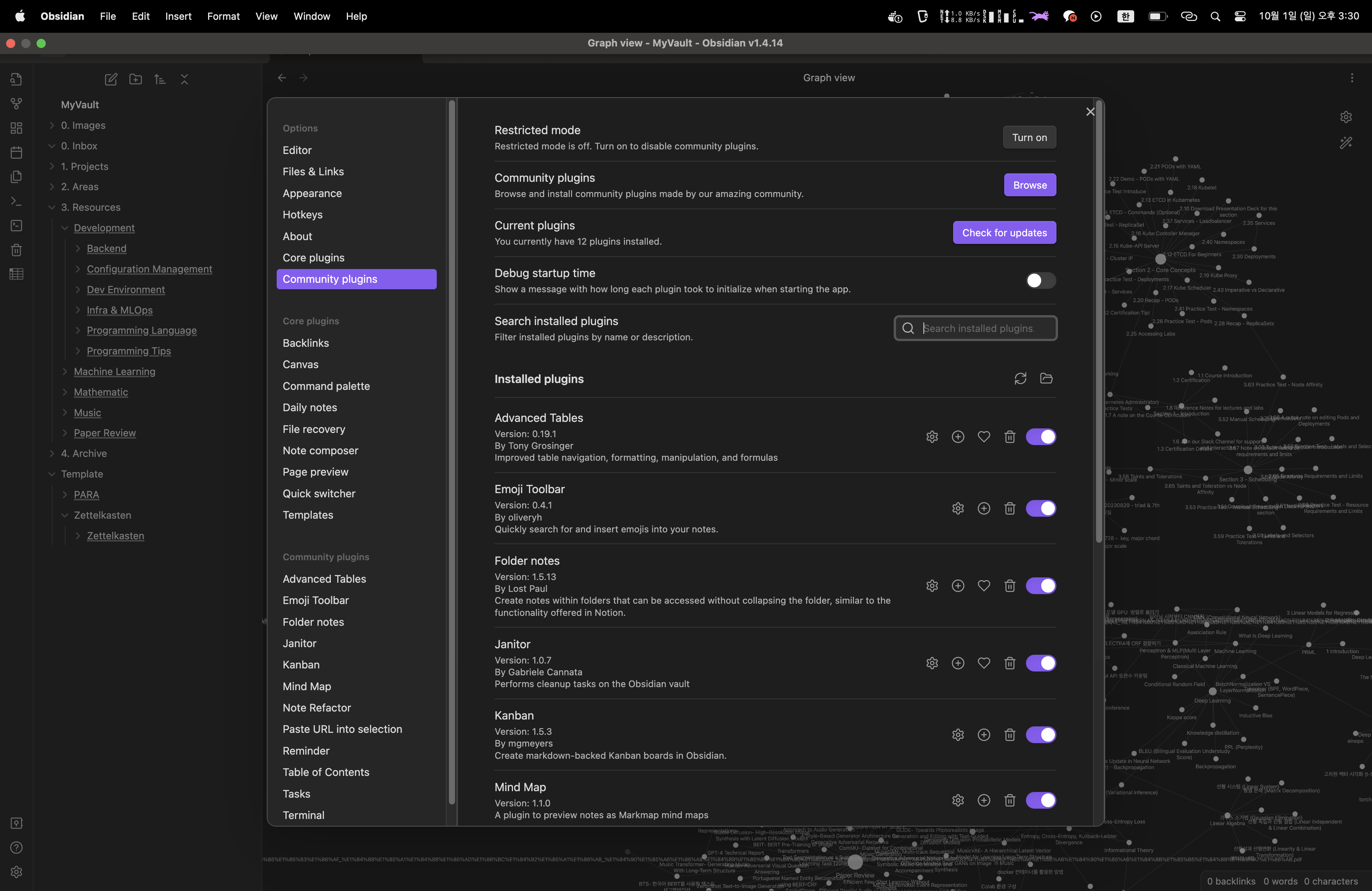 - 이후 좌측 상단의 [Obisidan] - [Preference] - [Community plugins] - [Browse]를 클릭합니다. (최초 Community plugins가 활성화가 안되신 분들은 해주시면 됩니다.)
