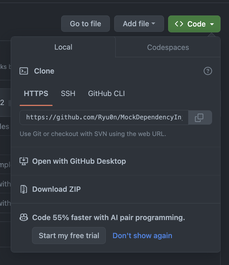 - 생성한 레포지토리의 주소를 복사합니다. [Code] - [HTTPS] 에서 우측의 복사 아이콘 버튼 클릭!