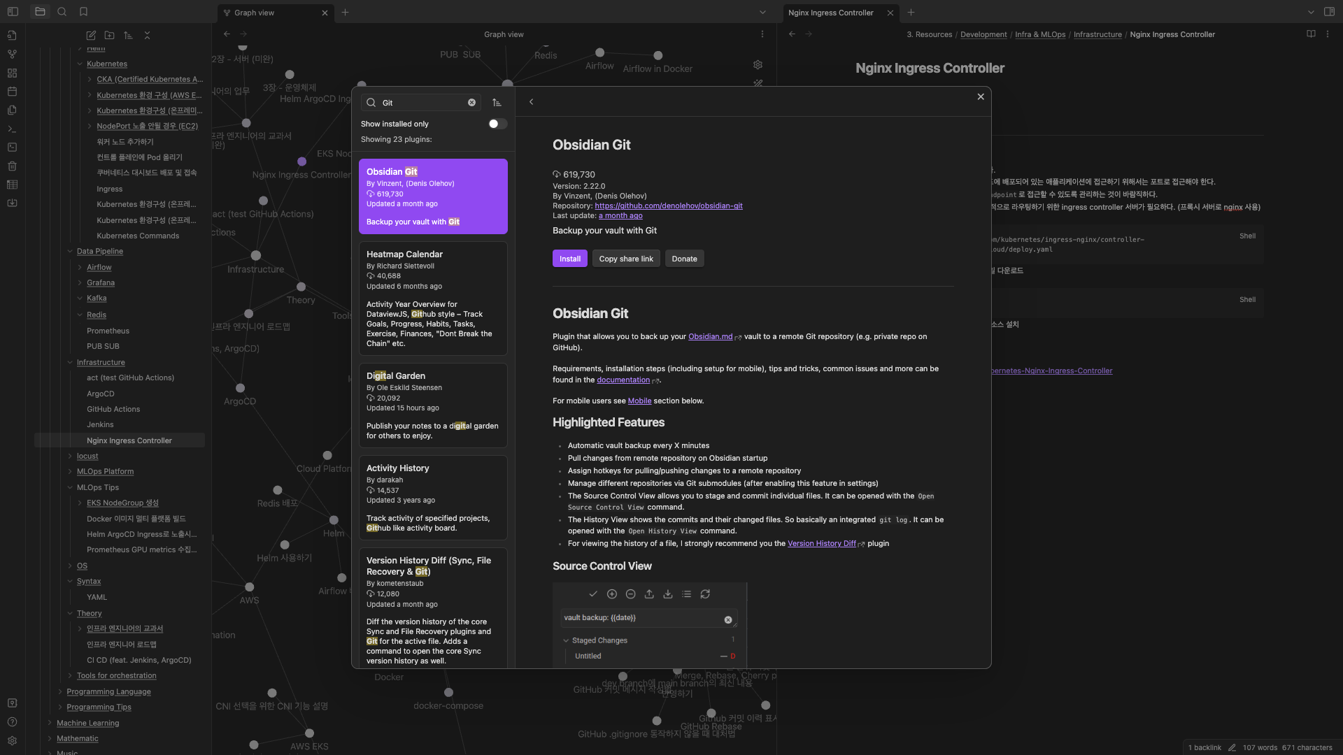 - importer 플러그인을 설치했을 때처럼 Obsidian Git 이라는 플러그인을 설치해야 합니다.