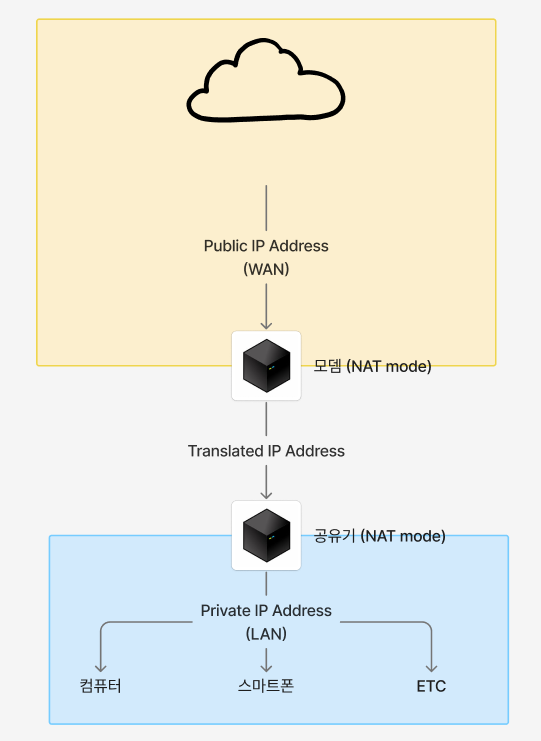 # 공유기(NAT 활성화)에 속했다면 다음과 같이 뜹니다.