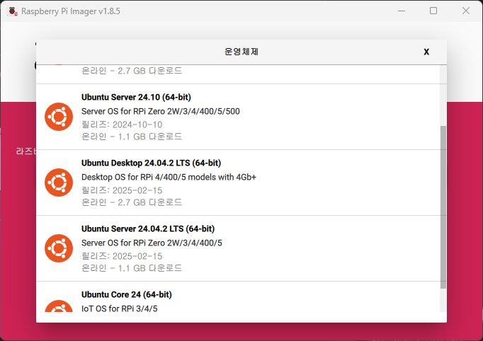 - 위 링크에서 Raspberry Pi Imager라는 프로그램을 자신의 운영체제에 맞게 설치하자.