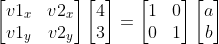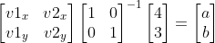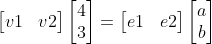 좌항의 v1, v2를 기저로 하는 좌표계에서 (4, 3)은 e1 [1, 0], e2 [0, 1] 를 기저로 갖는 직교 좌표계에서 (a, b)의 값을 갖는다.