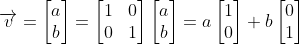 예를 들어 임의의 2-벡터가 주어져 있다고 가정하자. 이 벡터는 XY-평면상에 원점(0, 0)에서 (a, b)에 끝나는 벡터를 의미한다. 여기에는 실제로 좌표계(단위행렬)가 숨겨져 있다. 이 단위행렬은 XY-직교좌표계를 의미한다. ([1, 0], [0, 1]을 기저벡터로 하는 좌표계) 그리고 새롭게 표현된 선형 시스템은 (A가 단위행렬인) 선형 조합의 형태로도 표현이 가능하다.