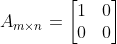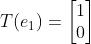 $e_1$ = [1, 0], $e_2$ = [0, 1] 벡터이다. 우리가 원하는 것은 $x$축에 투영되는 것이기 때문에 각 기저 벡터를 $x$축에 투영시키면 $T(e_1)$ = [1, 0], $T(e+2)$ = [0, 0]이 되어 $m \times n$ 표준행렬 $A$의 각 열에다가 stack하면 다음과 같이 구할 수 있다.