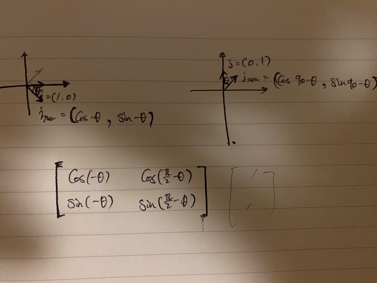 위 그림의 좌측에 $e_1$을 반시계 방향으로 회전시키면 [cos(-$\theta$), sin(-$\theta$)]