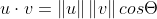 위에서 두 벡터 사이의 내적은 다음과 같이 정의했다.