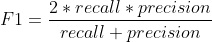 recall = 0.5, precision = 0.5 인 경우 F1 = 2 * 0.5 * 0.5 / 1.0 = 0.5