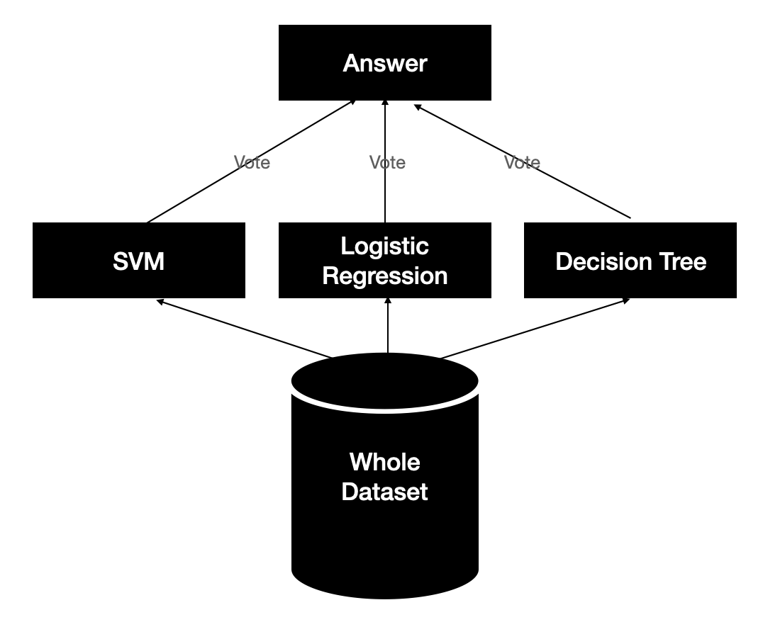 이미지 출처 : https://vitalflux.com/hard-vs-soft-voting-classifier-python-example/