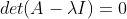 여기서 I는 identity matrix를 의미한다. 그리고 위 식이 만족하기 위해서는 벡터 x가 0이 되는 경우(trivial solution)를 피해야 한다. 그렇지 않을 경우 모든 고유값에 대해 위 식이 성립하는 오류가 발생한다.
