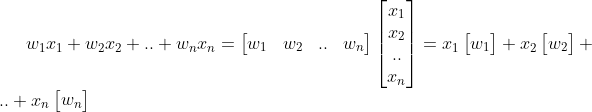 다른 곳에서 선형 조합 혹은 선형 결합에 대해 자세히 설명해주지만, 필자의 방식대로 해석해보자면, 가중치(w1~wn)와 피처(x1~xn) 벡터 사이의 내적이라고 정의할 수도 있을 것 같다. 그리고 이어서 내용을 적어보자면..