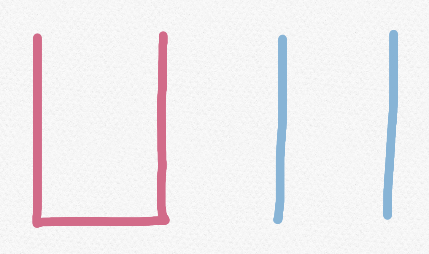 우선 직관적으로 접근하기 위해서는 그림을 그려보자. 스택과 큐를 유리컵에 비유하자면, 스택은 바닥이 막혀있는 유리컵이고 큐는 바닥이 뚫려있는 유리컵이다. 그리고 우리가 물건을 넣은 모습은 다음과 같다.