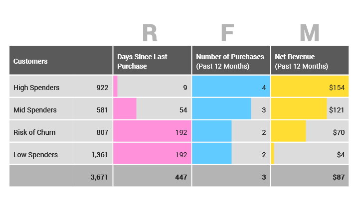 그렇다면 군집화는 무엇을 의미할까? 군집화는 다른 그룹보다 특성이 비슷한 데이터들끼리 그루핑하는 것을 의미한다. 예를 들어, 이 글을 읽는 독자가 사장이라고 가정해보자. 사장이 고객의 등급에 따른 새로운 비즈니스 전략을 세우려고 한다. (예를 들면, VVIP, VIP, 일반) 이 때, RFM (Recency, Frequency, Monetary) 분석을 통해 고객의 등급(=군집)을 분류할 수 있다.