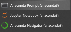 Anaconda를 설치하면 다음과 같이 Anaconda Prompt를 실행시킬 수 있다. 해당 프롬프트에서는 가상환경을 관리할 수 있다. 이제 가상환경을 관리하는 방법에 대해 알아본다.